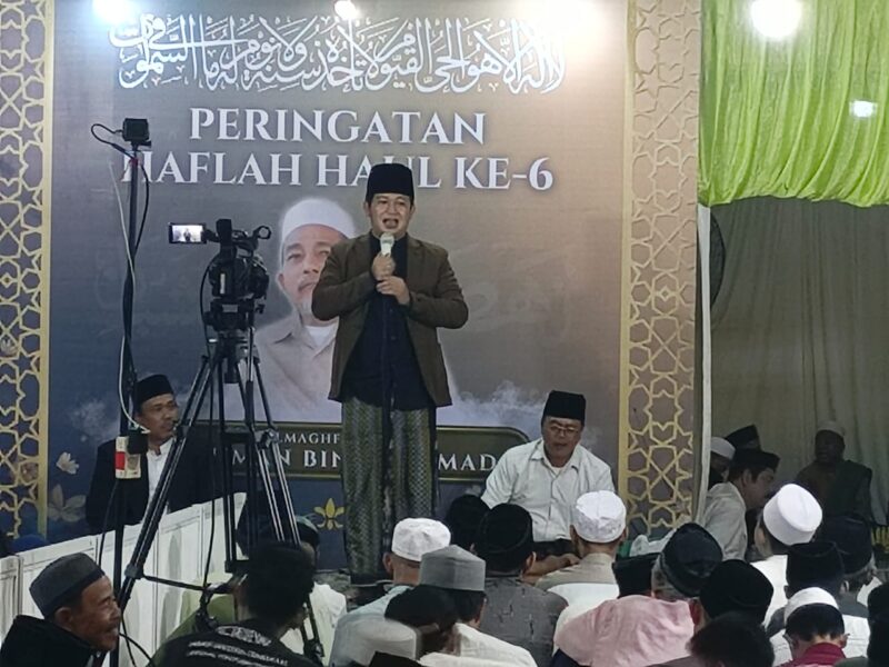 FORUMMAKASSARINFO.COM,-JAKARTA TIMUR, – Ustadz Zaky Mubarok Mengajak jemaah memberikan Lantunan salawat dan doa membubung tinggi ke langit kawasan Pondok Kelapa saat ribuan masyarakat bersatu dalam kekhusyukan Peringatan Haflah Haul ke-6, Minggu (28/12/2025). Acara yang digelar di Jalan Pondok Kelapa Selatan tidak sekadar ritual tahunan, melainkan manifestasi kerinduan umat terhadap sosok teladan yang telah berpulang dan wadah pemupukan nilai spiritual.