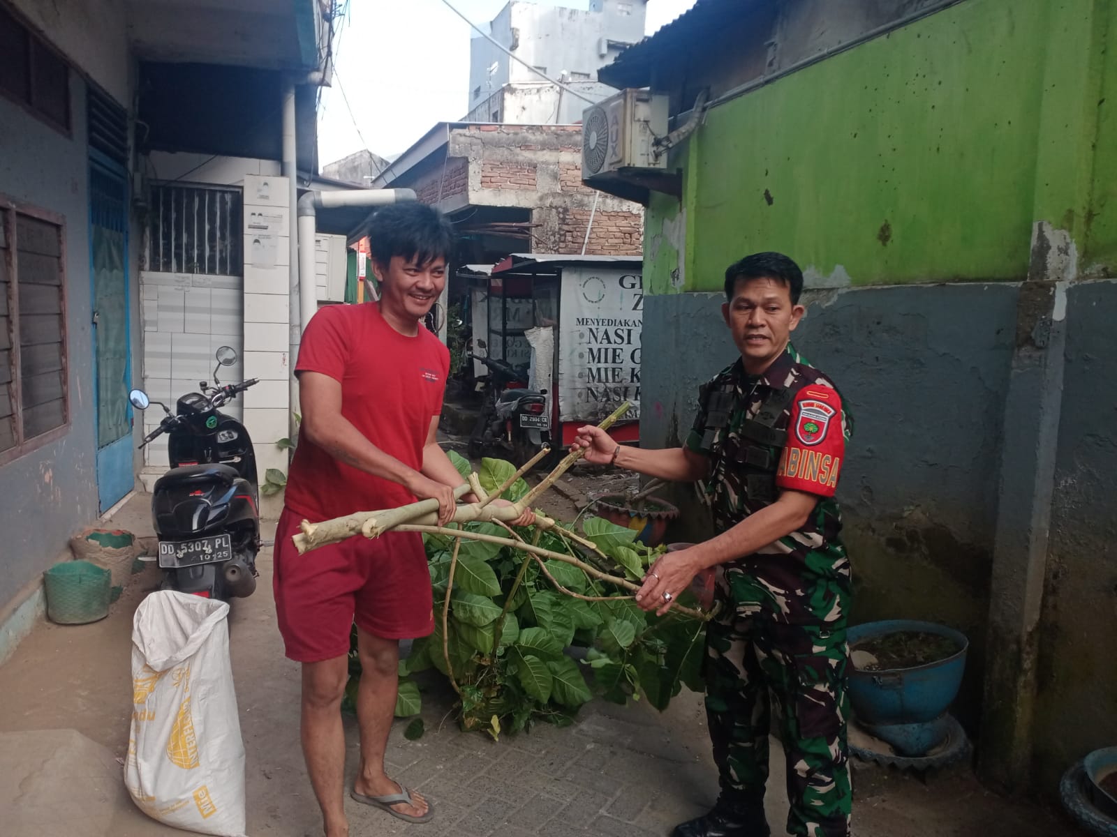 Pukul 07.45 Wita, Personil Koramil 1408-03/Wajo bersama Personil jajaran Polsek Wajo dan RT/RW Kel. Melayu Baru Kec. Wajo melaksanakan penanaman Pohon di Jl.Banda Kel. Melayu Baru