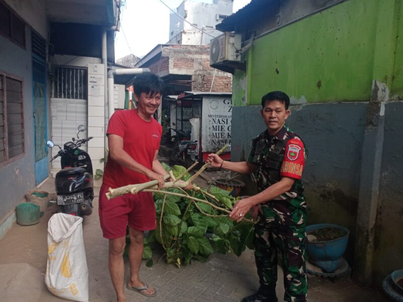 Demi Mencegah Terjadinya Banjir, Anggota Koramil 1408-03/Wajo Melaksanakan Kegiatan karya Bakti Penanaman Pohon di Jalan Sangir Kelurahan Melayu Baru Kec. Wajo Bersama Para Warga