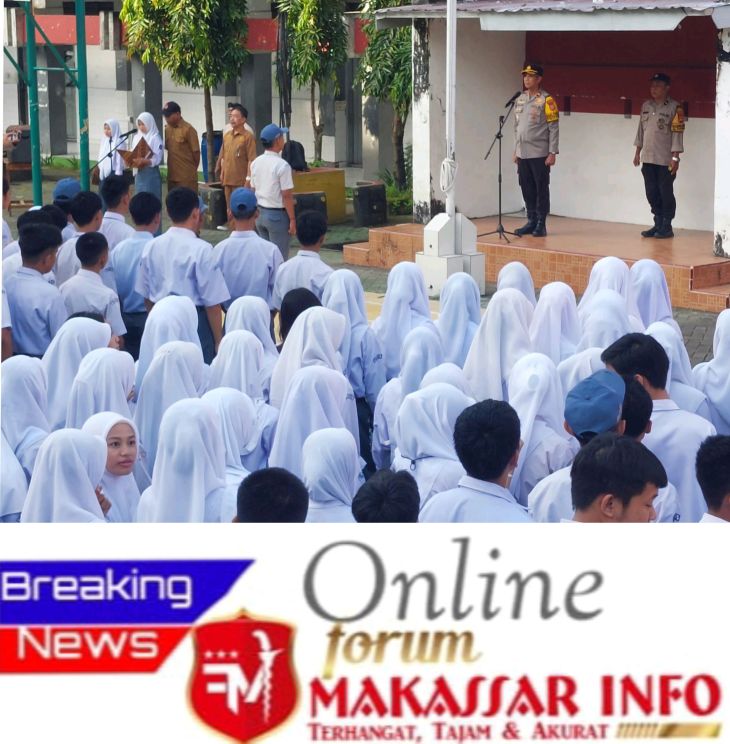 FORUMMAKASSARINFO.COM-Makassar – Kapolsek Bontoala Kompol Dr . Andi Aris Abu Bakar, SH.,MH memberikan arahan kepada sisa/i SMK 4 Makassar yang di laksanakan di Lapangan upacara SMK 4 jalan Bandang Kota Makassar dan dihadiri oleh Kepala Sekolah beserta jajaran staf dan tata usaha serta seluruh siswa/i SMK Negeri 4. Selasa (18/02/25) pagi.