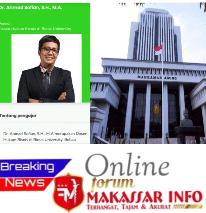 FORUMMAKASSARINFO.COM-Jakarta, – Ahli Hukum Pidana Universitas Bina Nusantara (Binus), Ahmad Sofian menyoroti maraknya perkara makelar kasus yang belakangan mencuat di lembaga peradilan Indonesia.