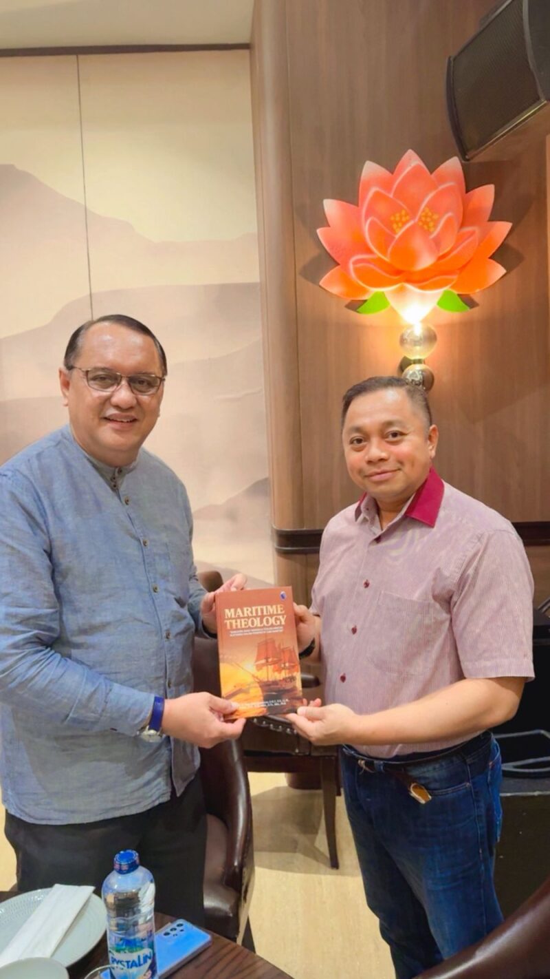 Makassar, 23 Maret 2026 — Sebuah peristiwa bernilai strategis dan spiritual berlangsung di Hotel Claro, saat Prof. Dr. Capt. Eddy Sumartono menyerahkan secara langsung buku karyanya “Maritime Theology” kepada Bapak Pendeta Salmon AJ. Bawole, Ketua Majelis Jemaat GPIB Gereja Bukit Zaitun Makassar. Momen ini menjadi lebih dari sekadar penyerahan buku, melainkan sebuah perjumpaan pemikiran yang mempertemukan dimensi akademik, maritim, dan spiritual dalam satu ruang yang harmonis.