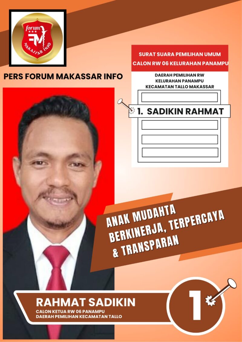 “InsyaAllah, dengan niat yang tulus, kerja keras, dan dukungan seluruh warga, kita bisa membangun RW Pannampu menjadi lingkungan yang aman, tertata, dan memiliki pemerataan dalam segala aspek. Saya siap bekerja bersama, mendengar, dan menggerakkan warga menuju perubahan yang lebih baik,” tutur Sadikin.