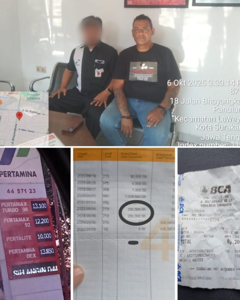 FORUMMAKASSARINFO.COM,-Surakarta, – Senin 6/10/2025. Sebuah SPBU di Surakarta menjadi perbincangan hangat setelah diduga melakukan praktik penipuan terhadap konsumen. Kabid Investigasi Gerakan Nasional Pengawasan Tindak Pidana Korupsi (GNP Tipikor) Jawa Tengah, Sholeh, dengan tegas mengkritik tindakan SPBU 44.571.23 yang terkesan mengabaikan keluhan konsumen.